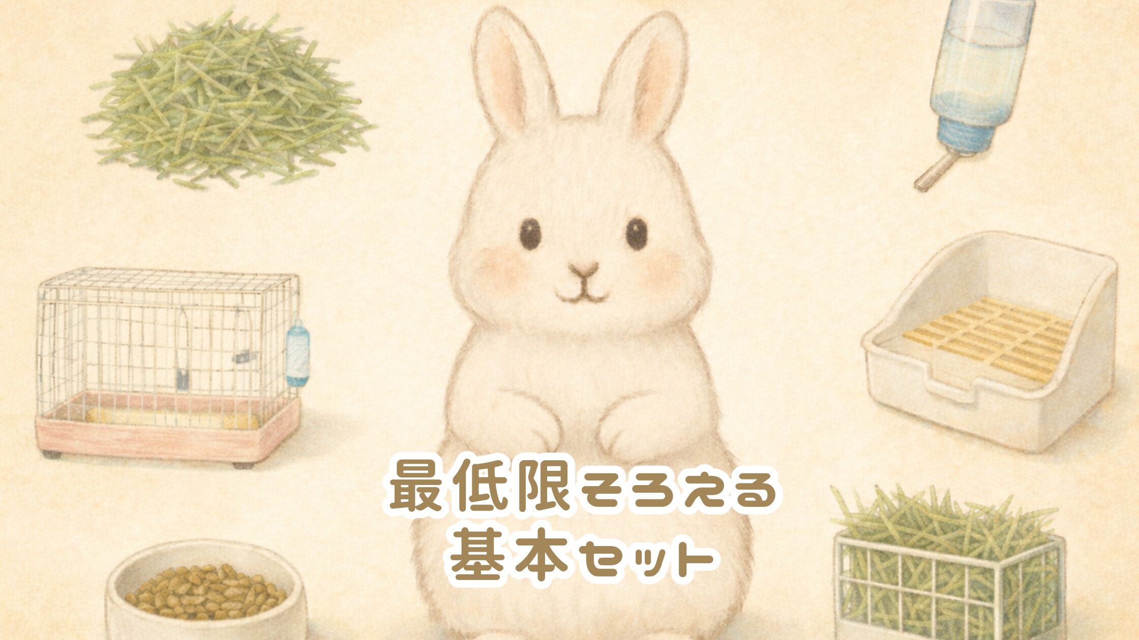 ※牧草やペレットなどの“ごはん”はとても大切ですが、ここではまず「グッズ(道具)」として整理し、次の記事以降で丁寧に深掘りします。